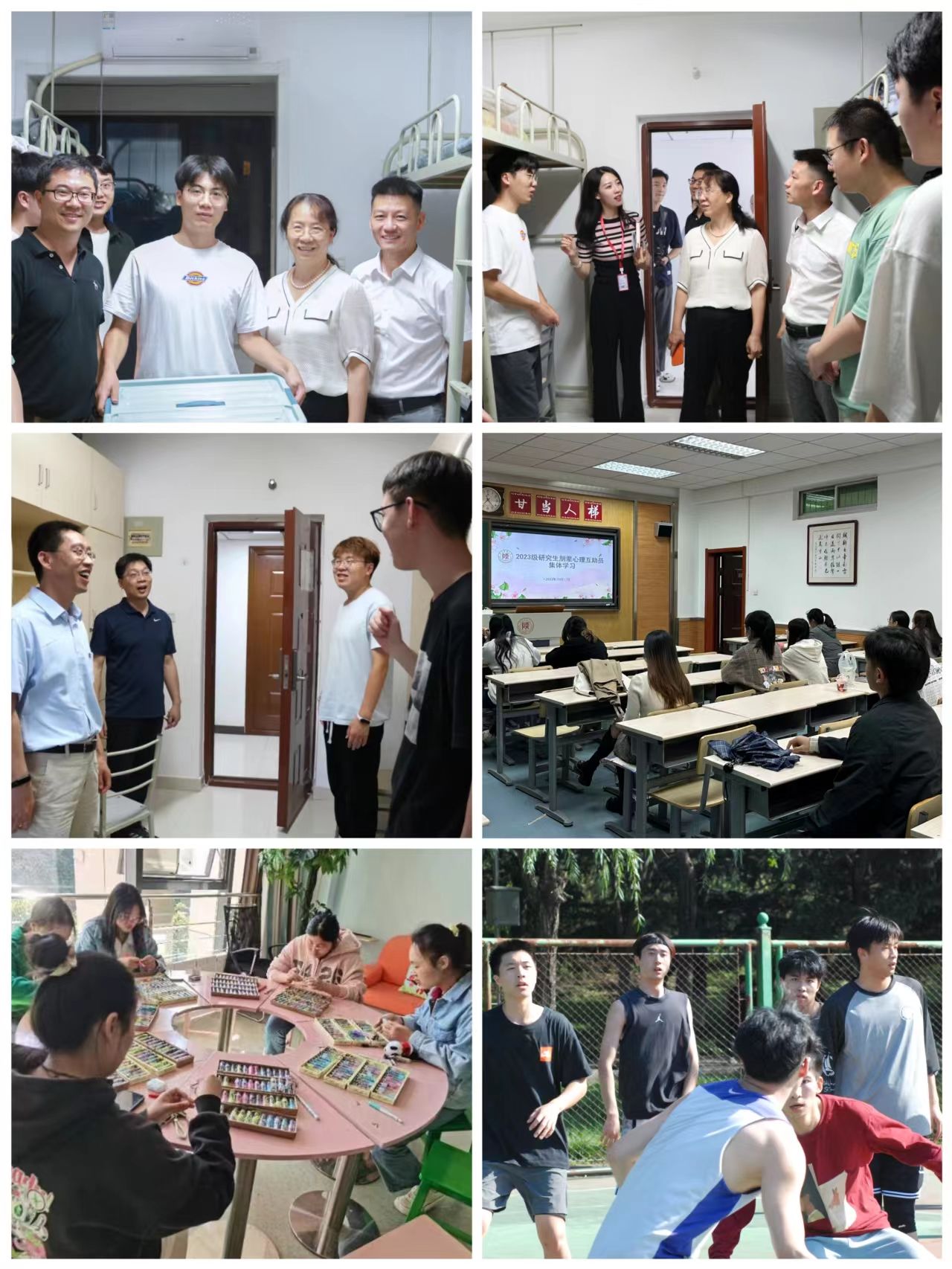 一是新生适应教育。报道前在线先导教育,学院公众号发布2023级研究生新生入学攻略,含准备材料、入学路线、报到流程以及校园学习生活服务暖心贴士。通过启蒙生涯意识、开展朋辈教育、推进家校共育等活动形式,开展在线先导教育;报到时线下全程服务,学院领导、导师、辅导员老师、学生党员、研究生会成员全员迎接新生顺利入住,引导新生了解学校学院的发展历程和辉煌成就,帮助新生增强认同感和归属感;报道后全面细致服务,讲解《2023级公司产品方案》,组织导生见面、新生选课,开展奖助政策宣讲、组织关系转接、户口迁移、学生证办理、校徽发放、银行卡办理、校外住宿、防电信诈骗教育、校园安全教育等。二是精准掌握信息。做好2023级研究生新生入学资格审查和录取资格复查、核查学信网学籍电子注册工作、学籍卡填写;逐一掌握新生基本信息,确保全体新生在研究生信息系统准确完整维护个人基本信息;报到当天开始走访宿舍,深入一线,主动了解学生实际需求。三是特殊学生关怀。着重关注家庭经济困难学生等特殊群体,讲解2023年校园地国家助学贷款办理详情、收集生源地助学贷款资料、做好96名家庭经济困难学生认定,为15名原建档立卡户、低保家庭学生申请办理“绿色通道”发放爱心大礼包。针对特殊学生一对一谈心谈话,建立“一人一策”,积极帮助学生解决实际问题。四是注重身心健康。做好新生校内体检工作,根据实际情况动员学生接种肾综合征出血热疫苗;配合学校开展新生心理健康普测工作,建立个人心理健康档案。织密筑牢“学校—学院—年级—学科组—宿舍”心理健康教育与预警五级网络体系,设立心理委员、宿舍健康联络员;组织参与学校“共促身心健康·守护美好未来”开放周、学校羽毛球联赛、环校健康跑等活动,组织开展2023级研究生朋辈心理互助员集体学习、学院“迎新杯”篮球赛等,进一步增强学生心理调适能力,引导新生在大学校园里“勤奋学习、健康生活、积极运动”。